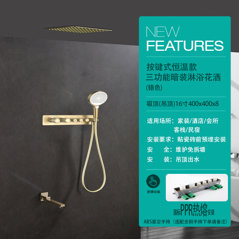 Silver Thermostat 12" Suspended Ceiling Three Functions No Light Black Thermostat 12" Suspended Ceiling Three Function No Light Gun Grey Thermostat 12" Suspended Ceiling Three Function No Light Brushed Gold Constant