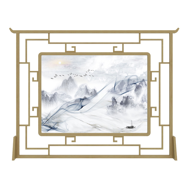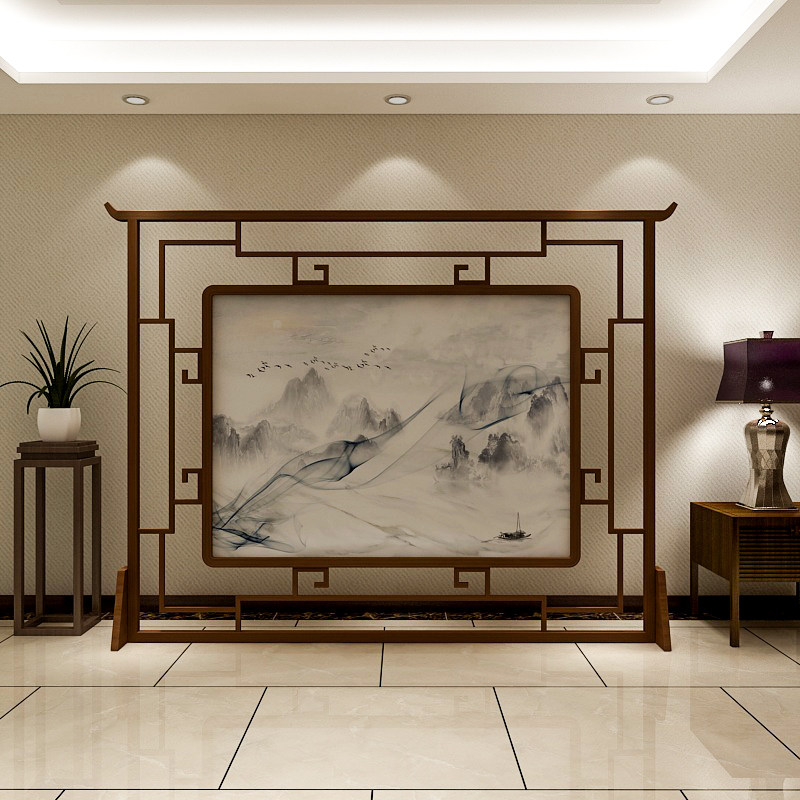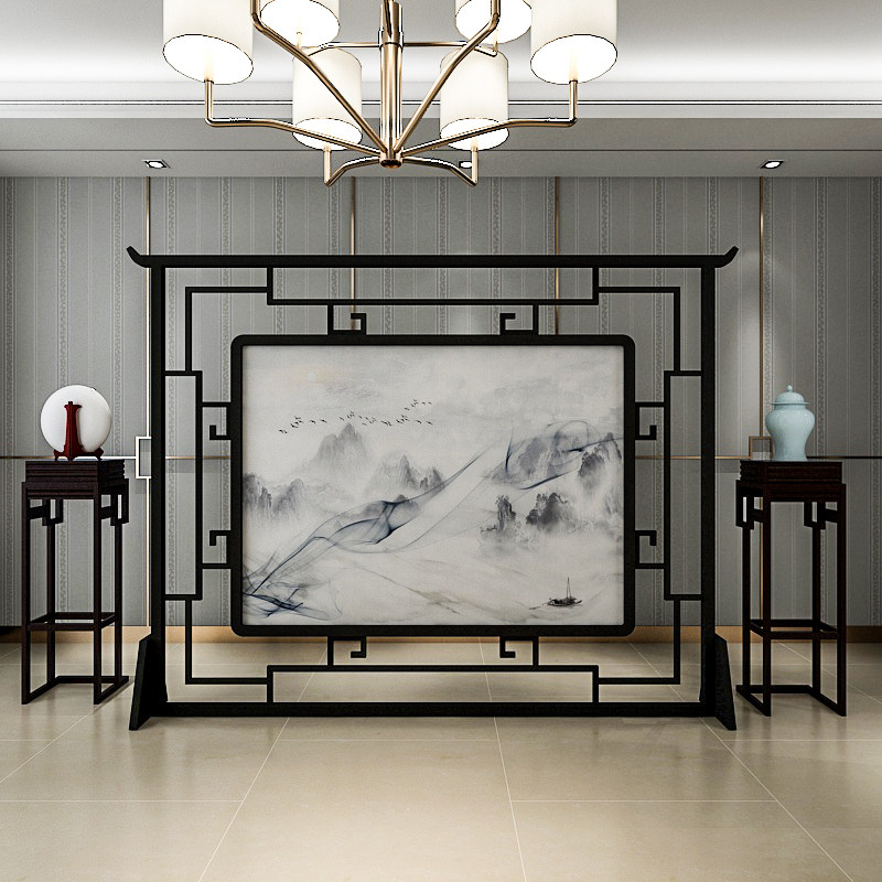 New Chinese solid wood hollowed-out screen partition living room hotel restaurant Xuanguan seat screen semi-transparent yarn quality screen can be moved