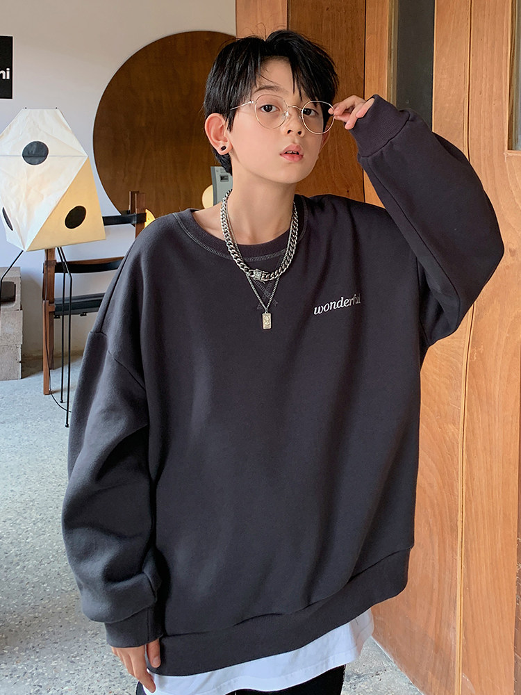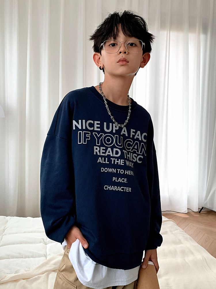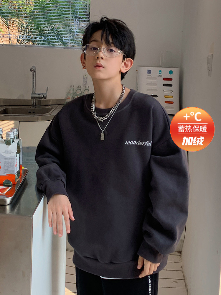 Boys' sweater autumn and winter models plus velvet thickened big boy men's clothing in the big boy boys autumn jacket children's large size children's clothing