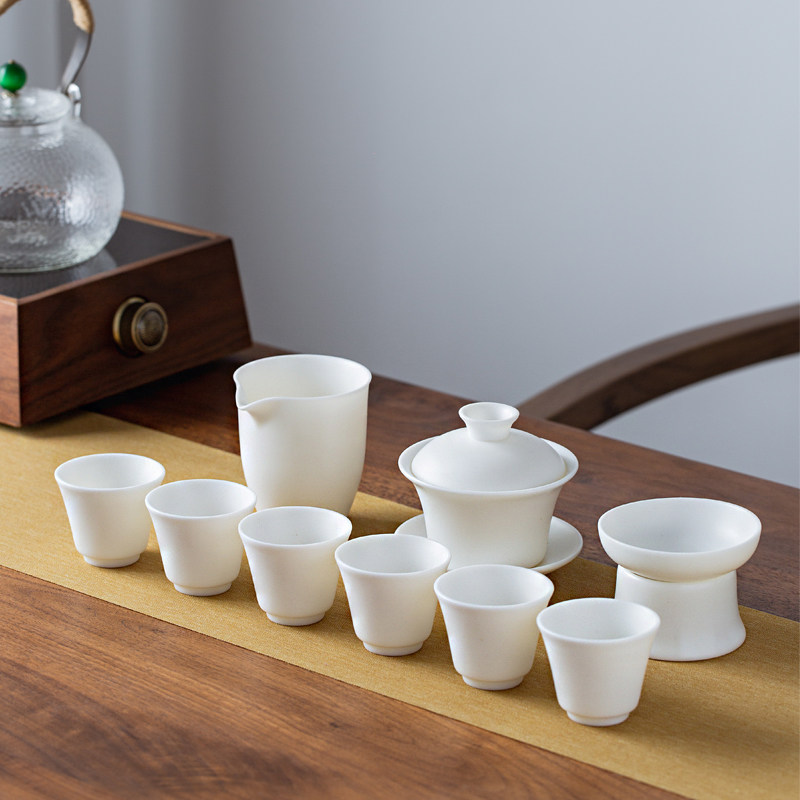 Defied White Porcelain Triple cover Bowl Tea Cup Goat Grease Jade Vegetarian Burn Ceramic Whole Set Bowl With Lid High-end Kung Fu Tea Set Group