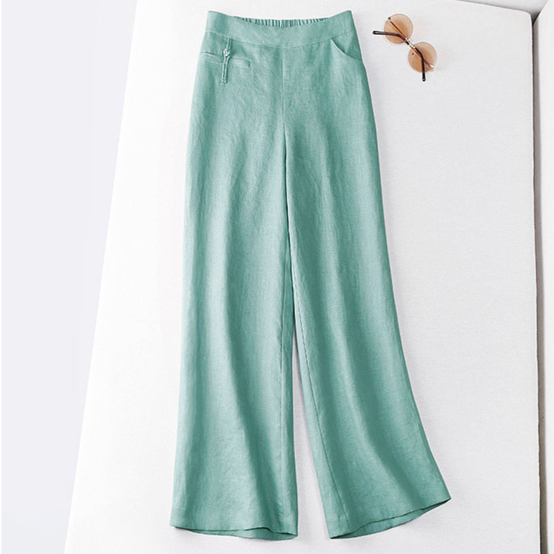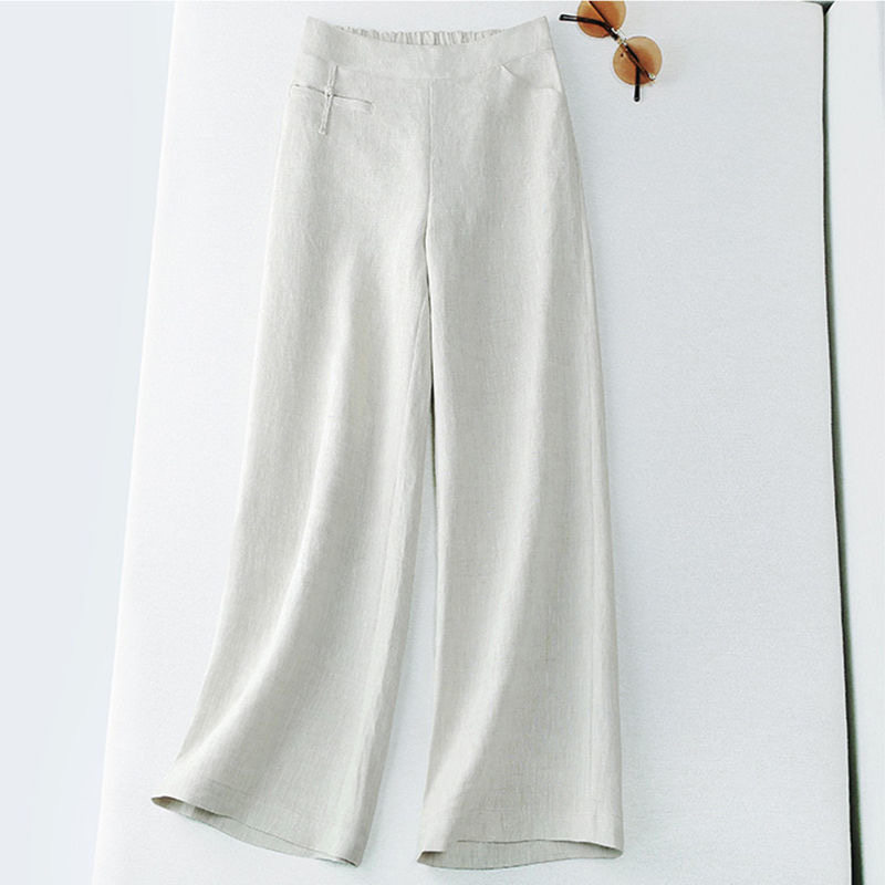 Outlet Italian High-end Women's Foreign Trade Original Single Cotton Linen Wide Pants Casual Long Pants Pants Summer Thin women's pants