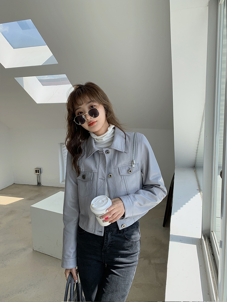 2022 spring and autumn new leather jacket ladies imported aurora leather small short motorcycle leather sheepskin jacket