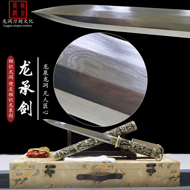 Longquan Longjian sword Long Chengjian short sword pocket sword ring head pattern steel covered soil burning blade hand forged unopened edge