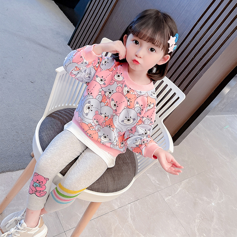 Girls' Autumn Suits 2021 New Baby Girls Spring and Autumn Western Style Casual Cartoon Children's Autumn Long Sleeve Two-piece Set