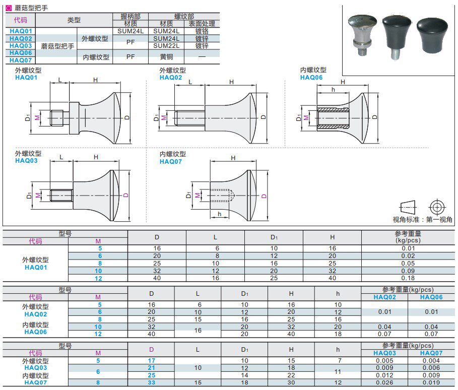 Mushroom head handle HAQ02 HAQ03 HAQ6 HAQ07 -- M5 M6 M8 M10-D17 D21 D25