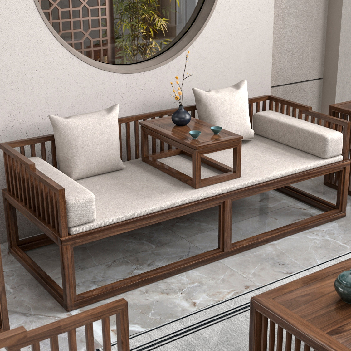 New Chinese Arhat bed telescopic push-pull elm small apartment solid wood living room modern minimalist sofa bed combination