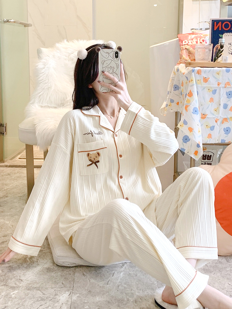 British Next Kiss confinement clothes spring and autumn March cotton postpartum sweat-absorbing pajamas for pregnant women maternity nursing clothes