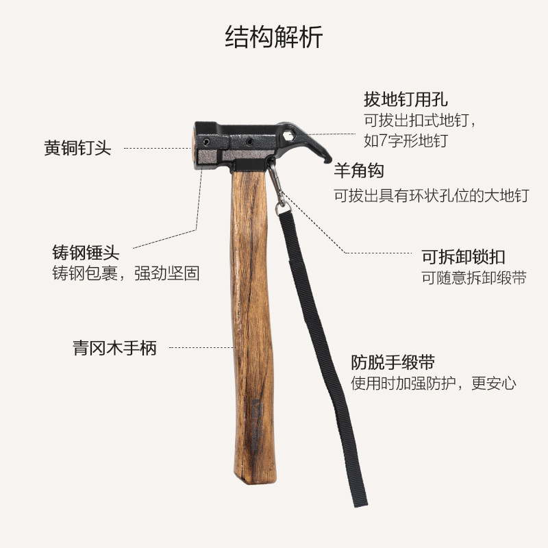 Mugao flute outdoor camping copper hammer outdoor camping tent light hammer hammer nail puller multi-functional hammer