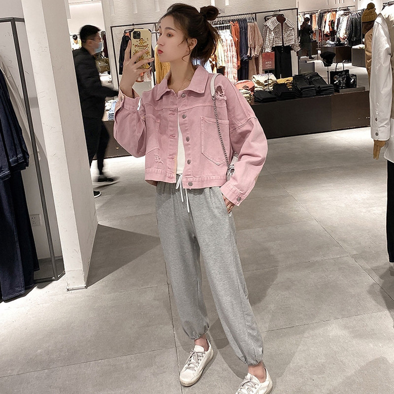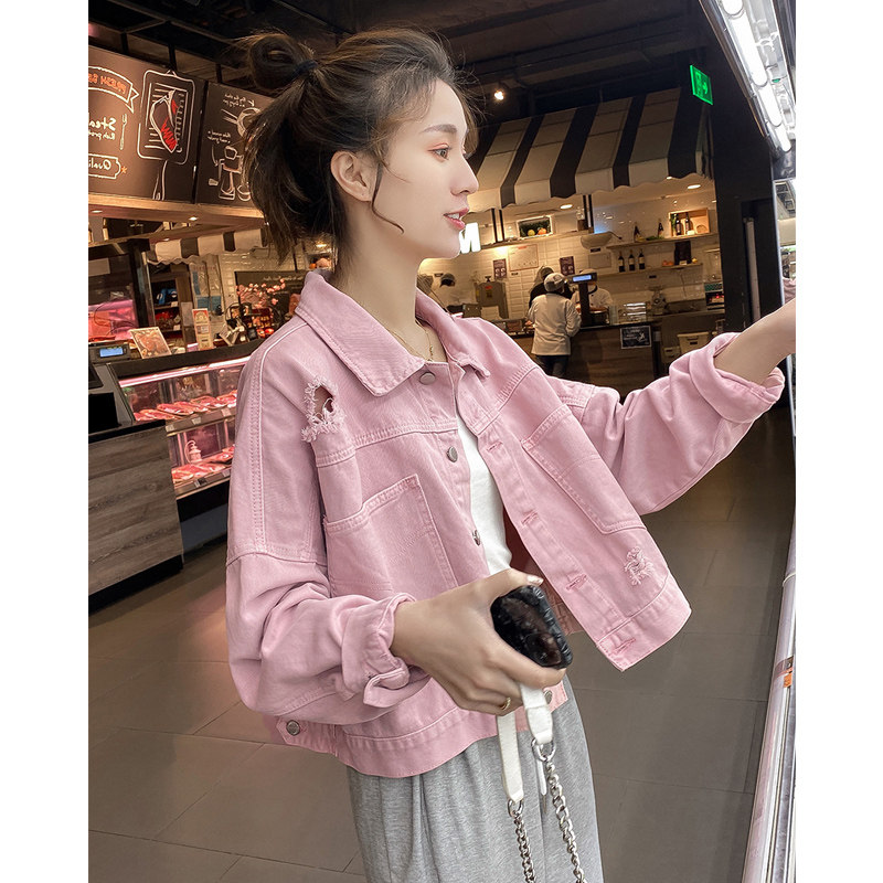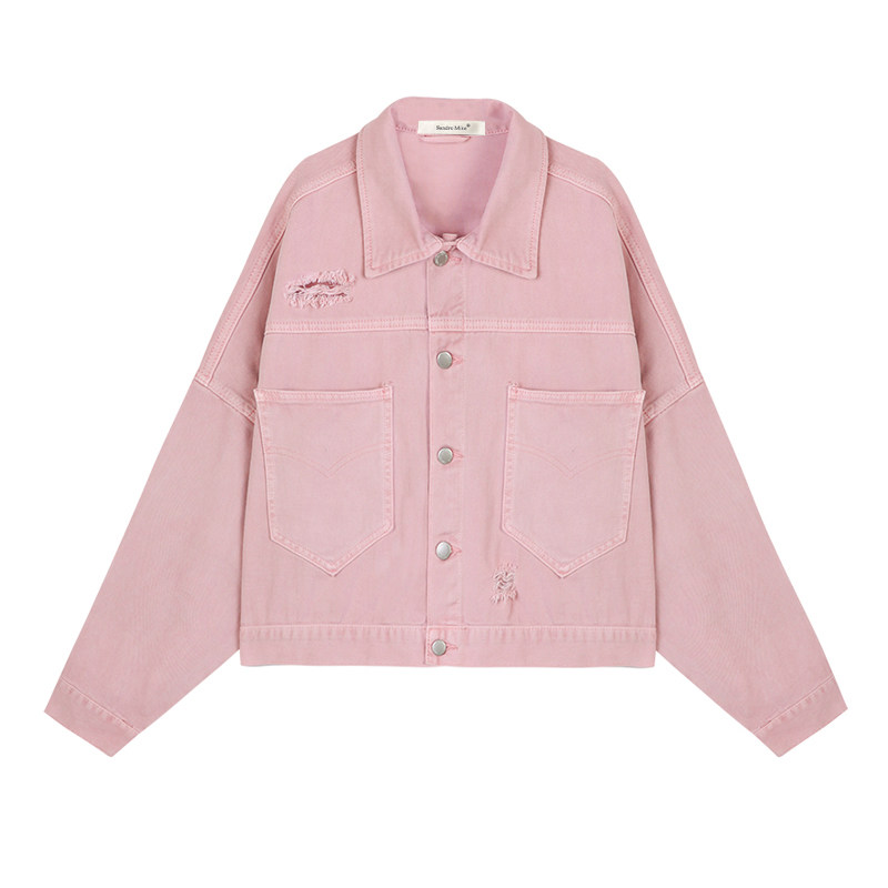 Sandro Miketo 2 0 2 2 Style Pink Fashion Little Fresh 100 lap jacket Short Jeans Long Sleeve Jacket