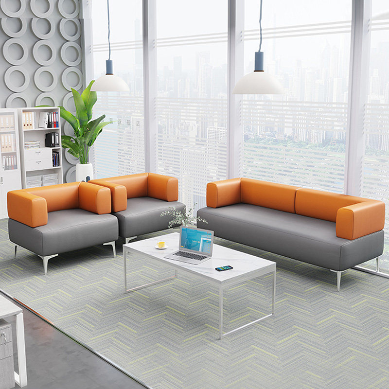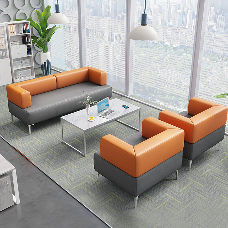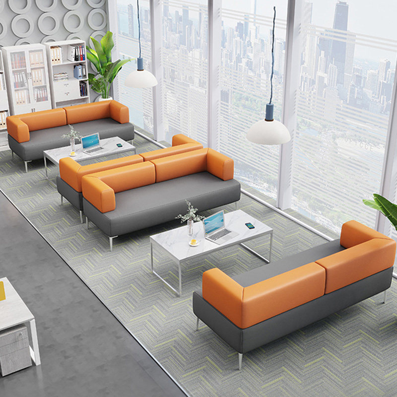 Office simple modern education and training institution reception guest lounge area creative leather sofa coffee table combination