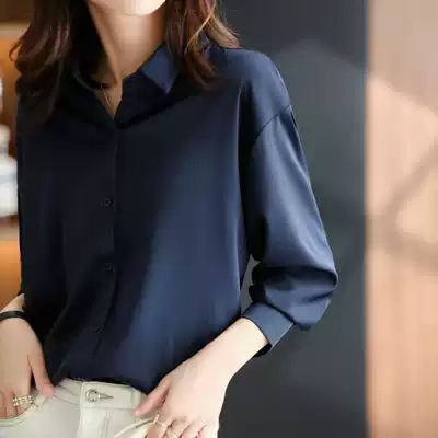 Silk temperament shirt female spring and autumn long sleeve slim casual shirt professional top design sense minority Blue