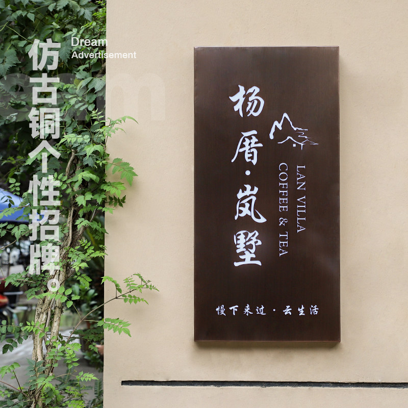 Stainless steel luminous light signs ancient bronze red copper retro hollowed-out light box billboard sign doorplate hanging design making