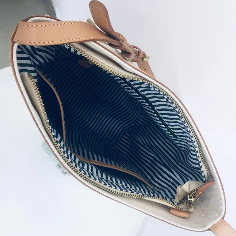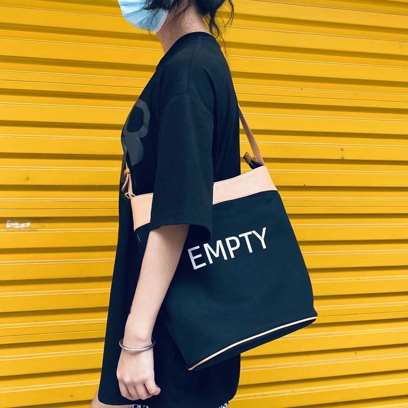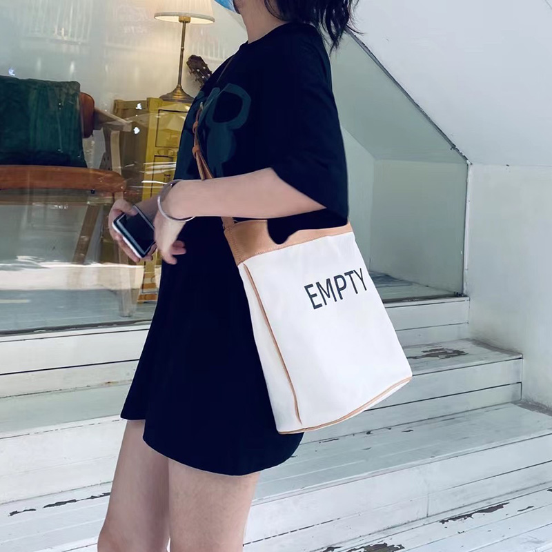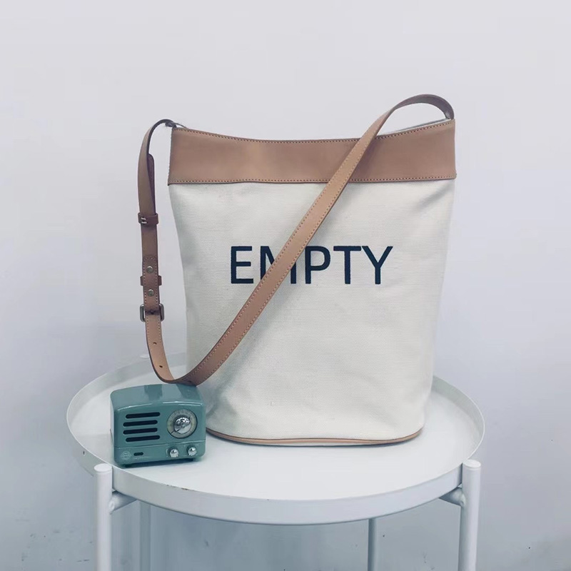 Canvas with cowhide bucket bag women's single shoulder bag Messenger bag large capacity Japanese casual design trendy