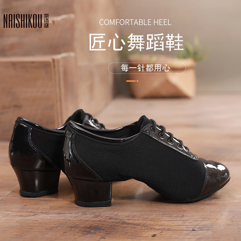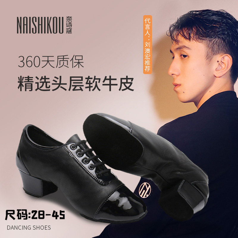 Men's Latin Dance Shoes Adult Boys and Children Leather Soft Sole Exercise Shoes GB Cha-cha Performance Competition Dance Shoes
