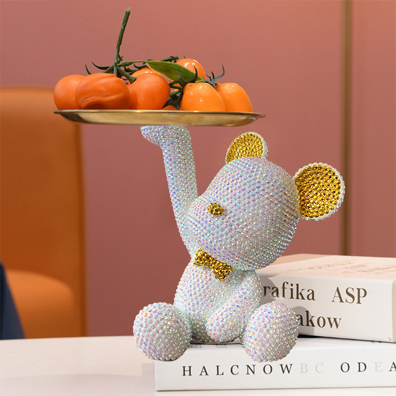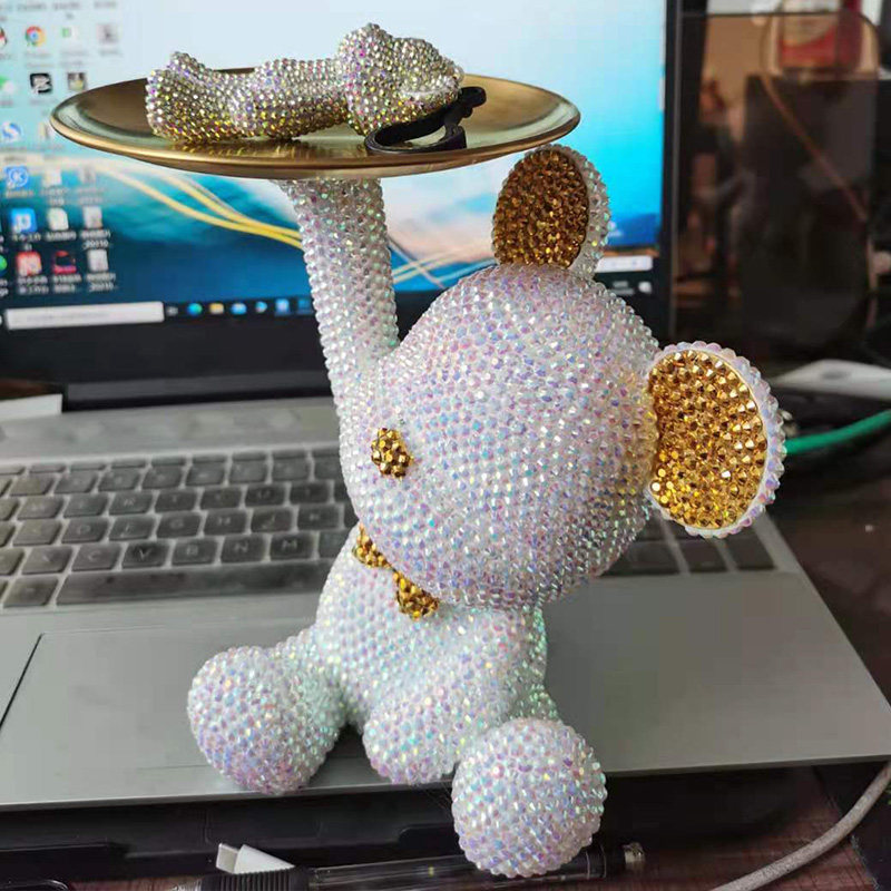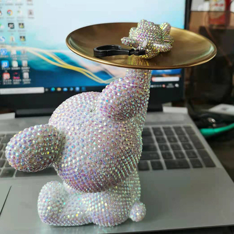 Creative diy paste diamond bear porch key storage tray decoration light luxury doll manual sticky drill violent bear material