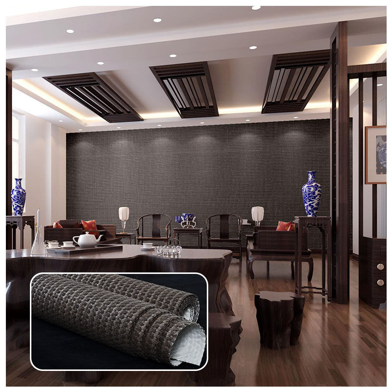 Hemp thread linen straw woven new Chinese retro wallpaper rattan woven paper thread wallpaper Thai club Japanese Korean tea room