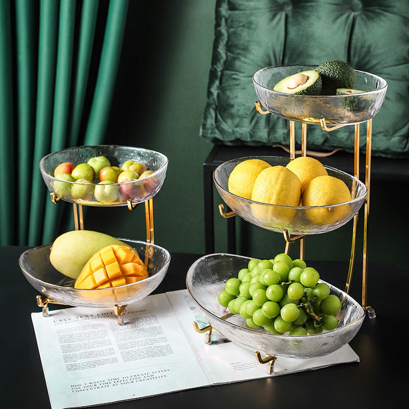 Porcelain wood a fruit plate living room home glass fruit plate snack plate light luxury simple double-layer candy plate dry fruit plate