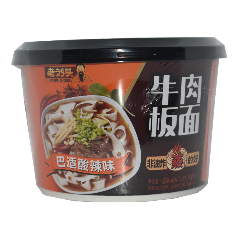 Old Liu Tau Anhui Beef Board Barrel Loaded With Sour Spicy And Spicy Beef Taste Convenient For Instant Noodles Non-Fried Wide Noodles