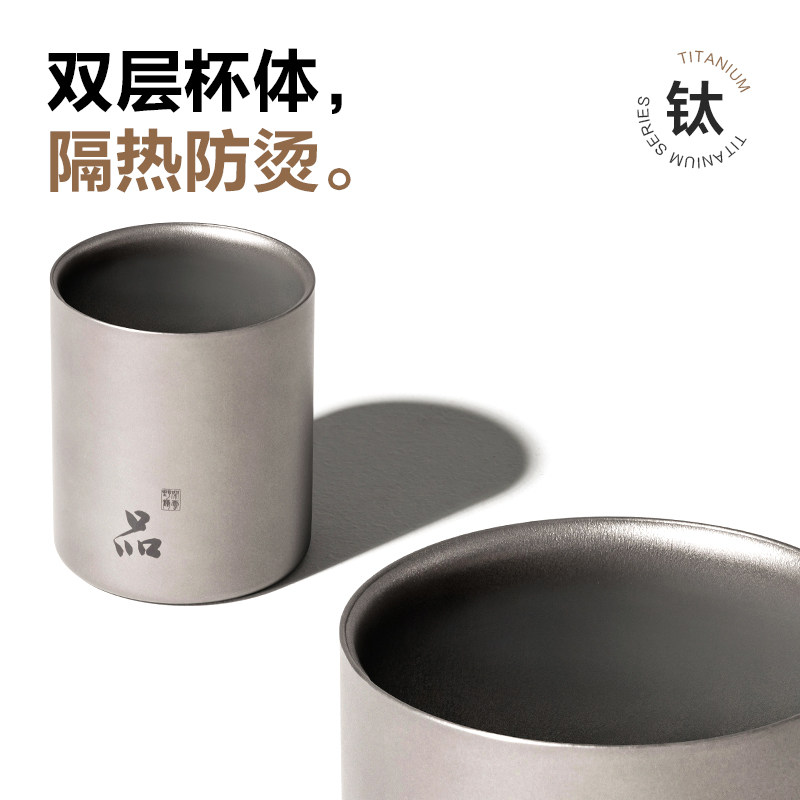 Mugaodi outdoor picnic tableware handleless double-layer titanium cup portable camping ultra-light pure titanium tea cup water cup XY