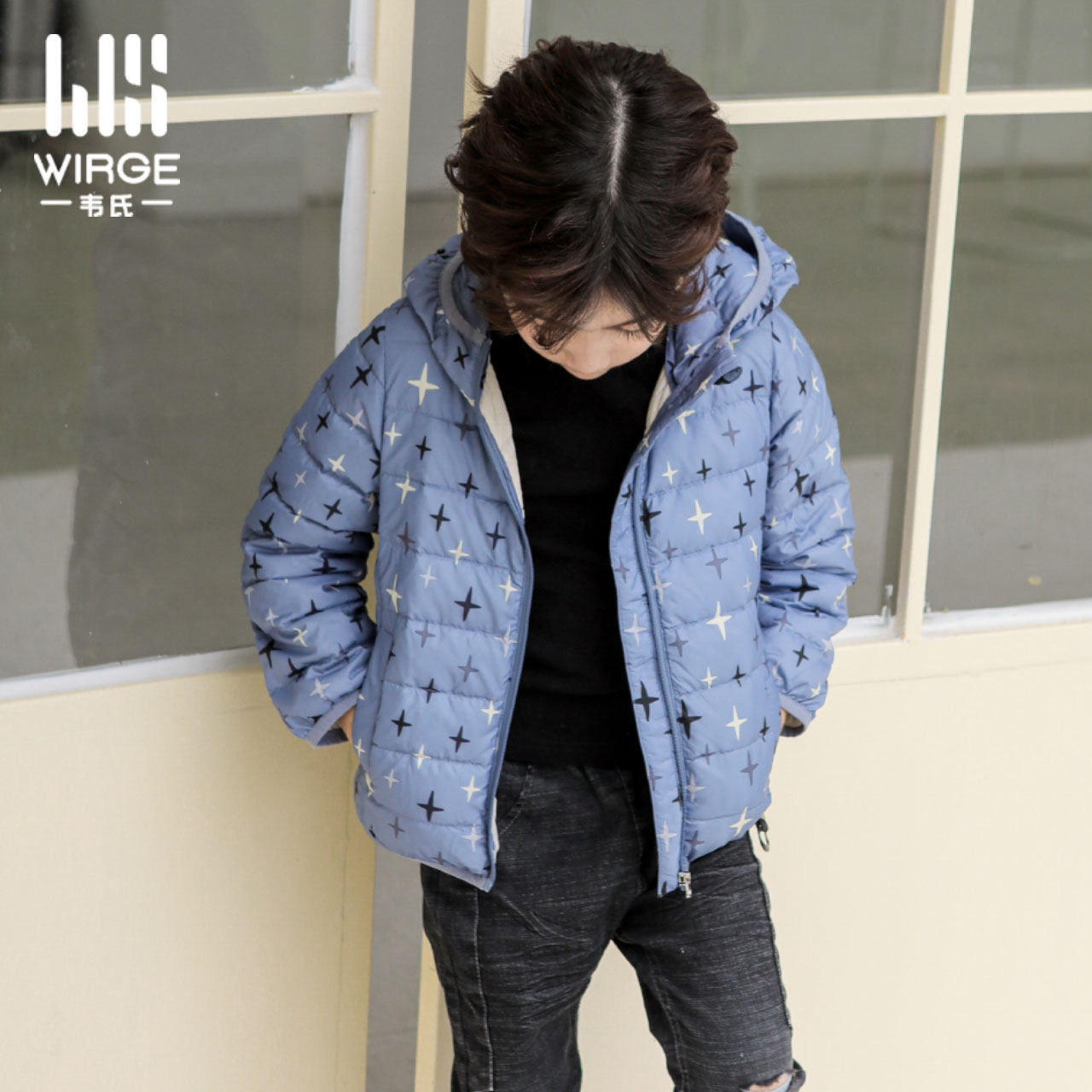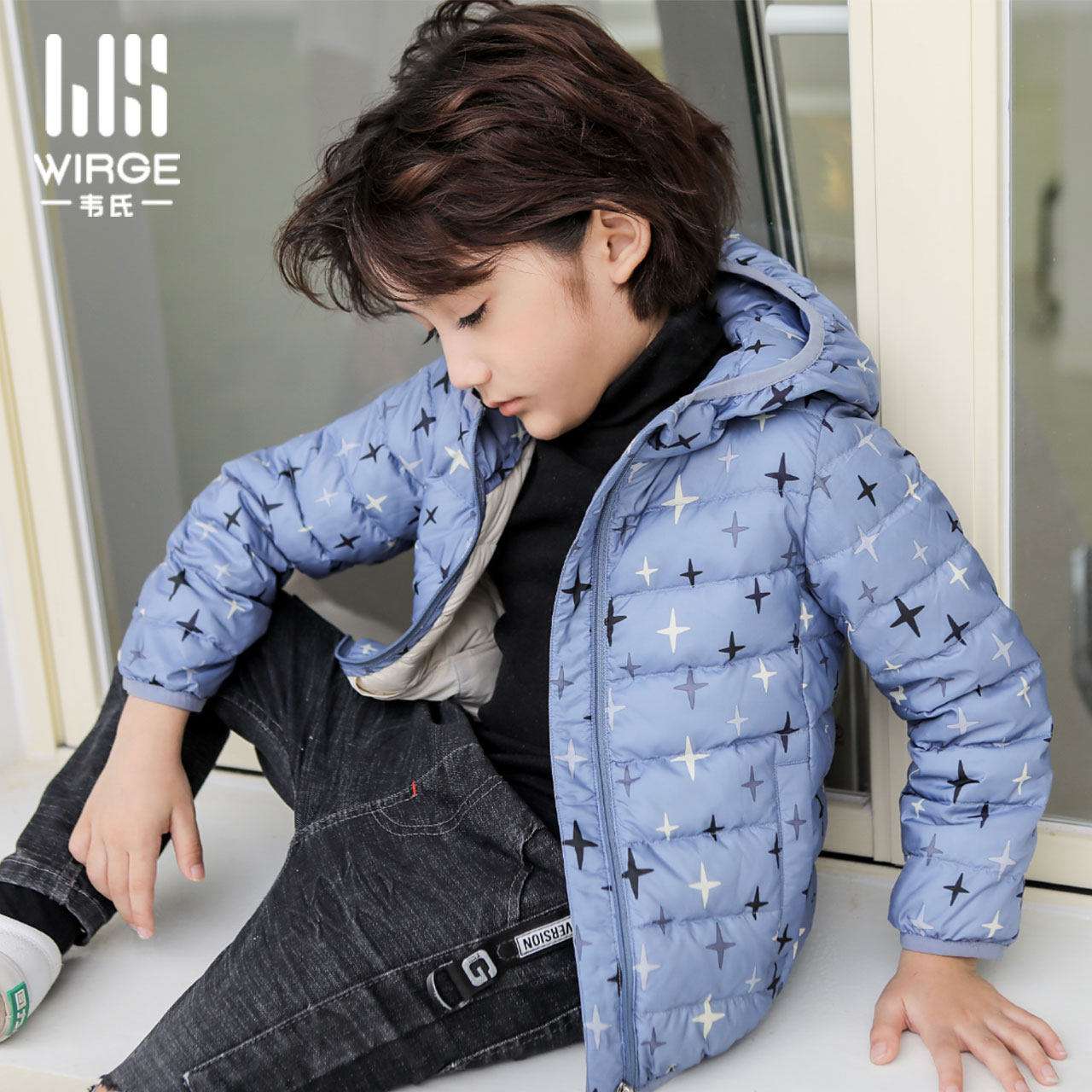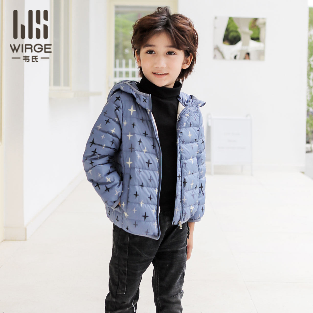 Webster's men and women middle and big children's white duck down short section light and thin hooded warm sweet autumn and winter coat down jacket