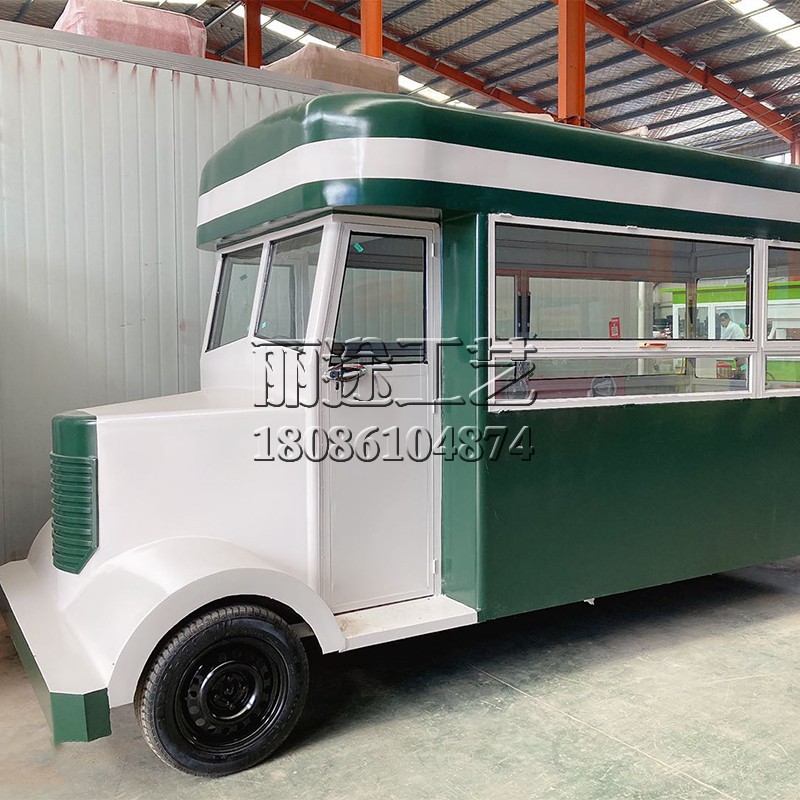 Retro large iron bus dining car milk tea burger snack car scenic shopping mall decoration decoration props car customization
