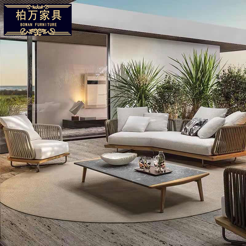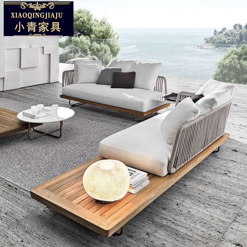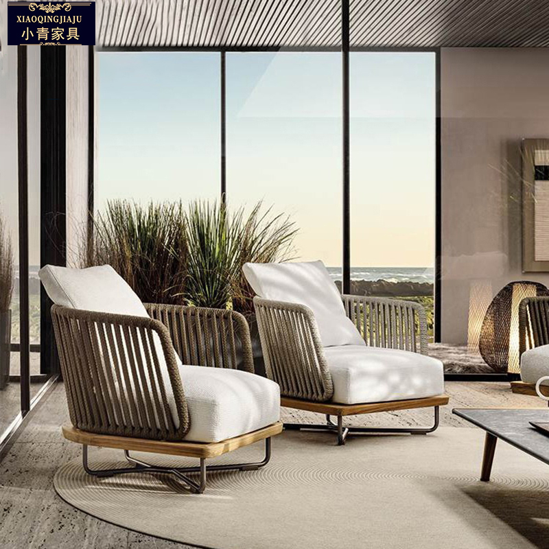Teak Outdoor Sofa Courtyard Rattan Outdoor Furniture Balcony Rattan Sofa Chair Designer Hotel Rattan Chair Sofa
