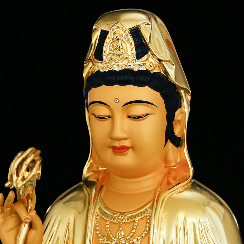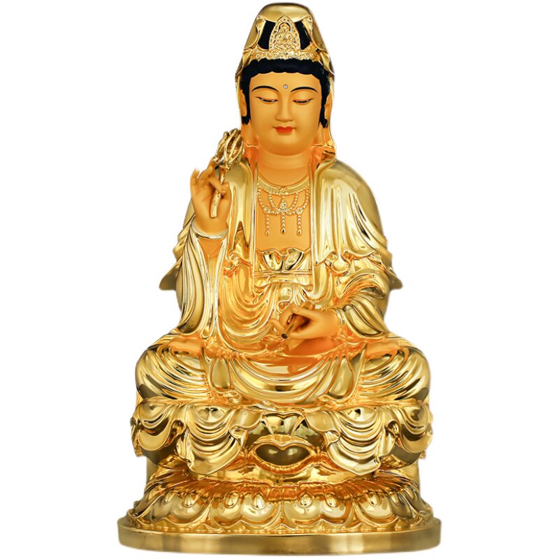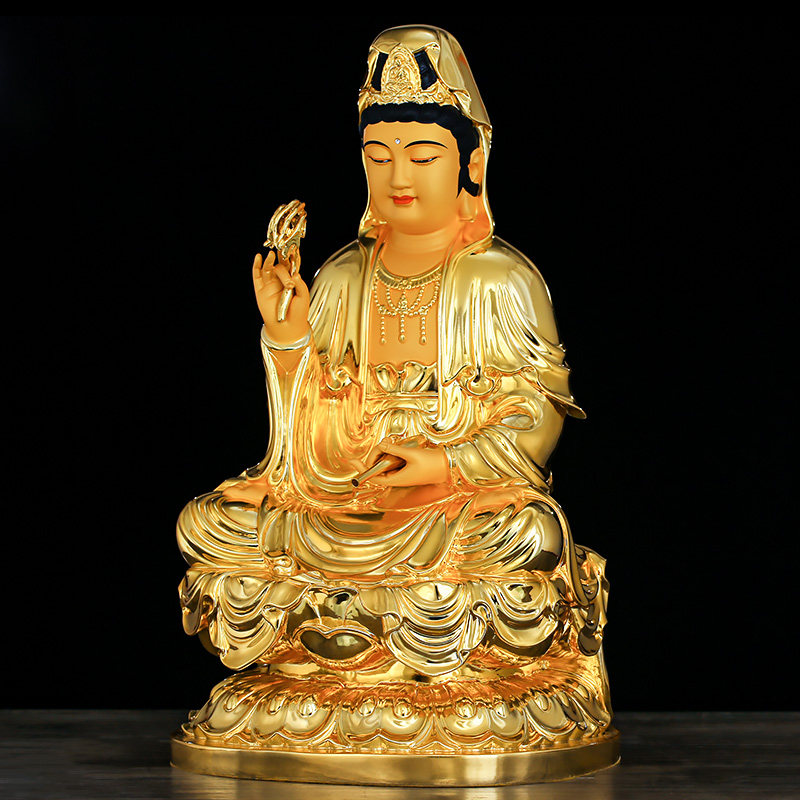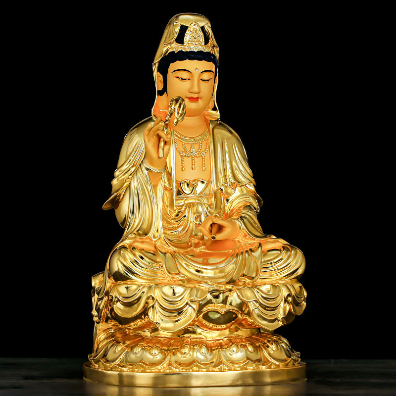 Pure bronze Guanyin Buddha statue is dedicated to the family of the South China Sea Guanyin Bodhisattva Buddha statue Daquan ornament Shabha Three Sacred Offerings to the Buddha