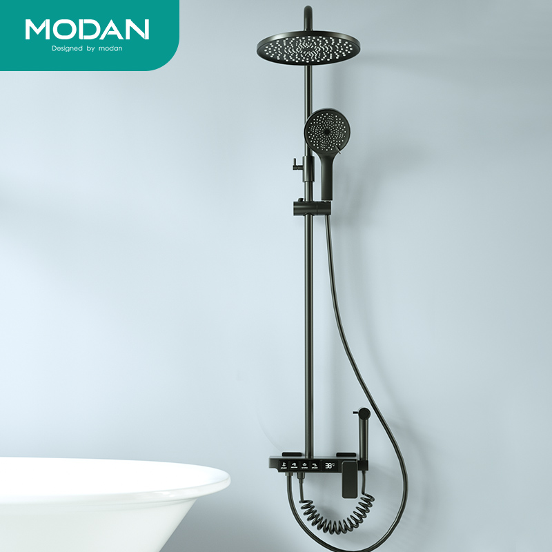 German black digital display thermostatic shower shower set bathroom bath booster nozzle bathroom household full copper shower head
