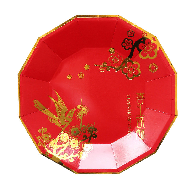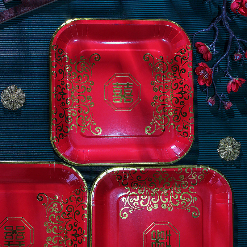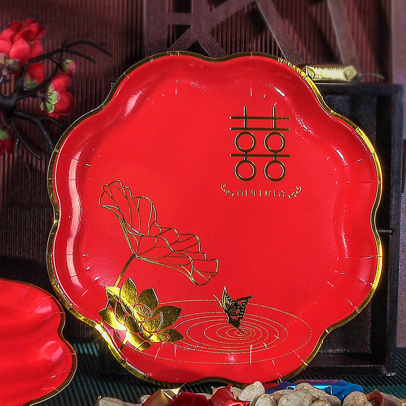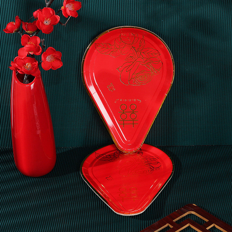 Marriage Wedding Disposable Red Candy Wedding Feast Fruit Paper Plate Wedding Engagement Plate Supplies Daquan