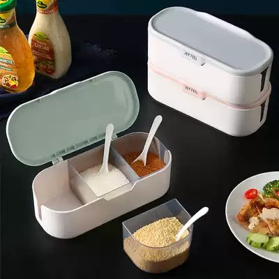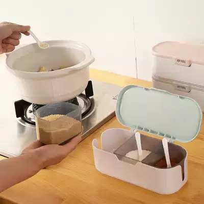 Seasoning box set Household kitchen seasoning storage box with lid Spoon salt tank Detachable plastic MSG box