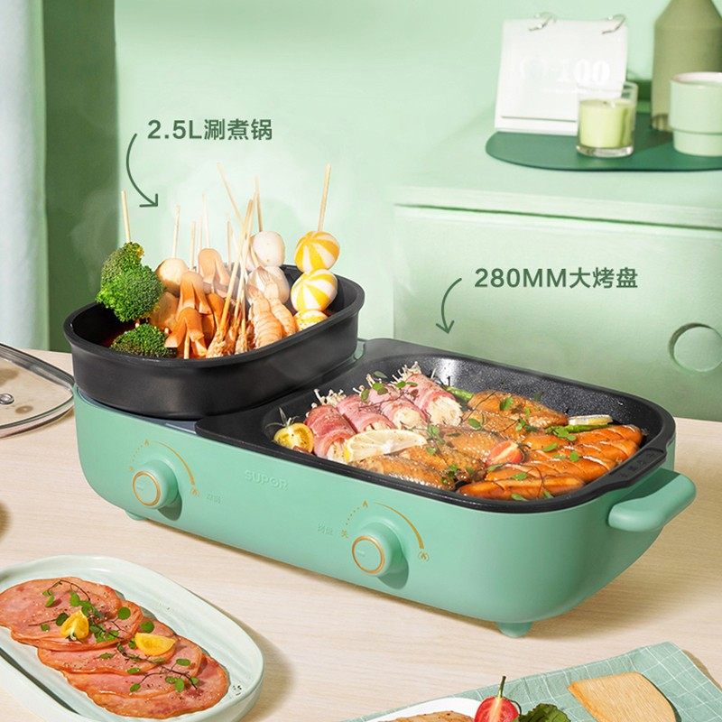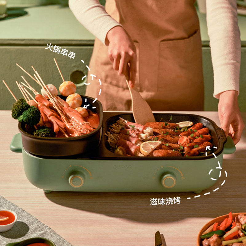 Suber shabu-shabu one-piece pot electric oven home electric hot pot pan frying grill meat skewer plate smokeless multi-functional electric pot