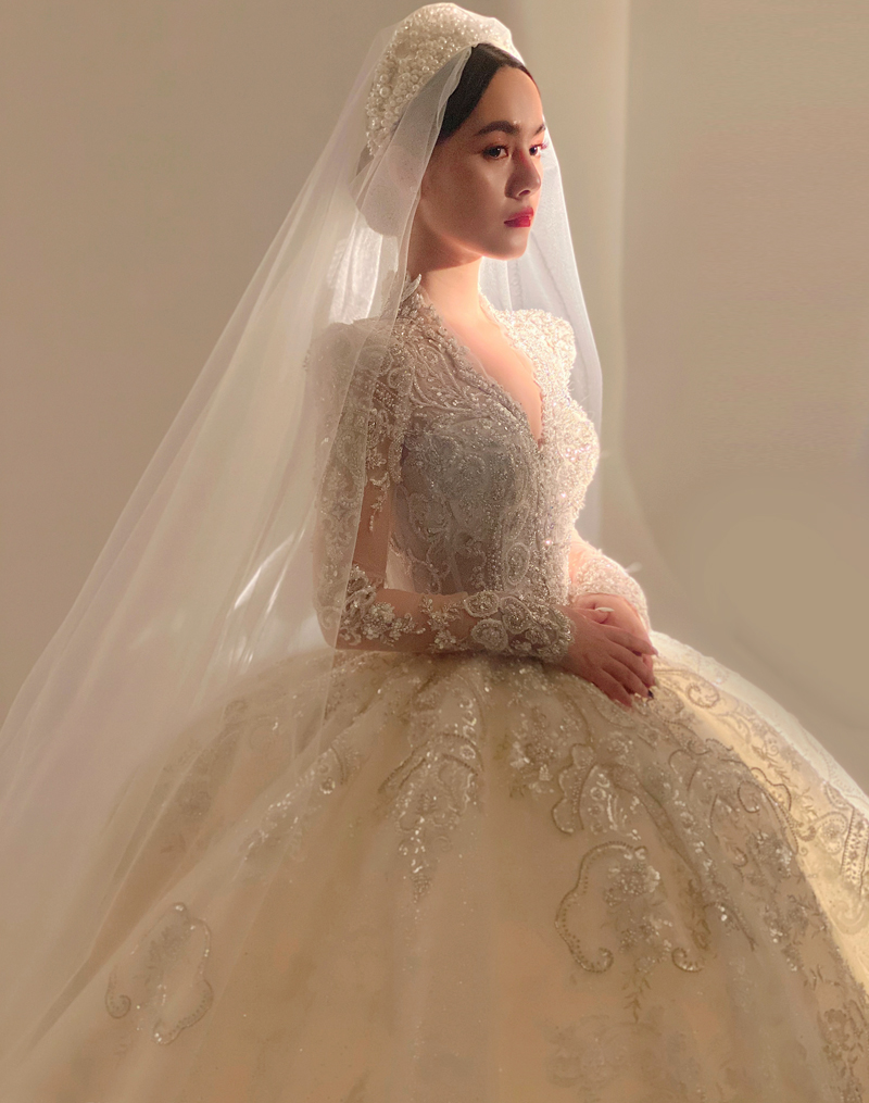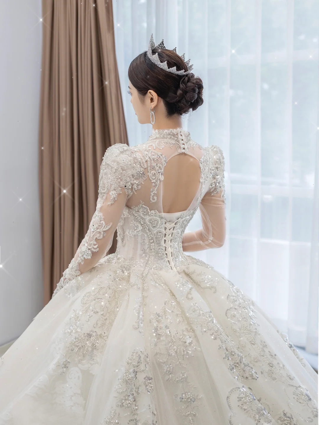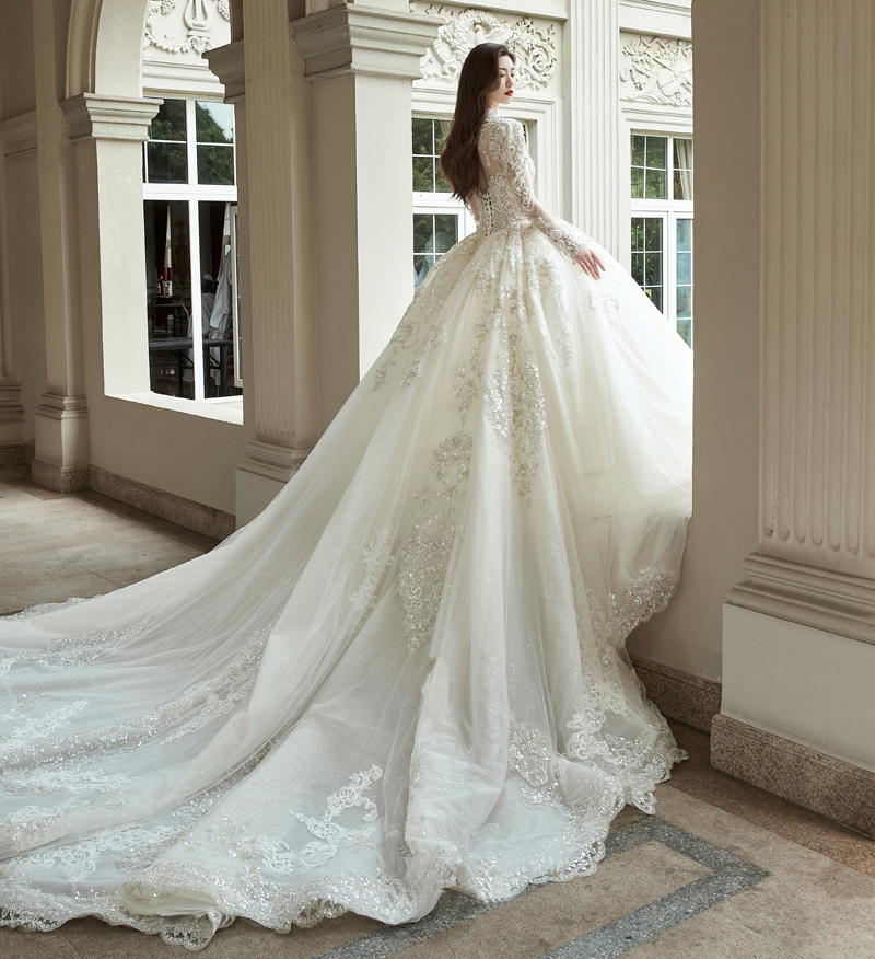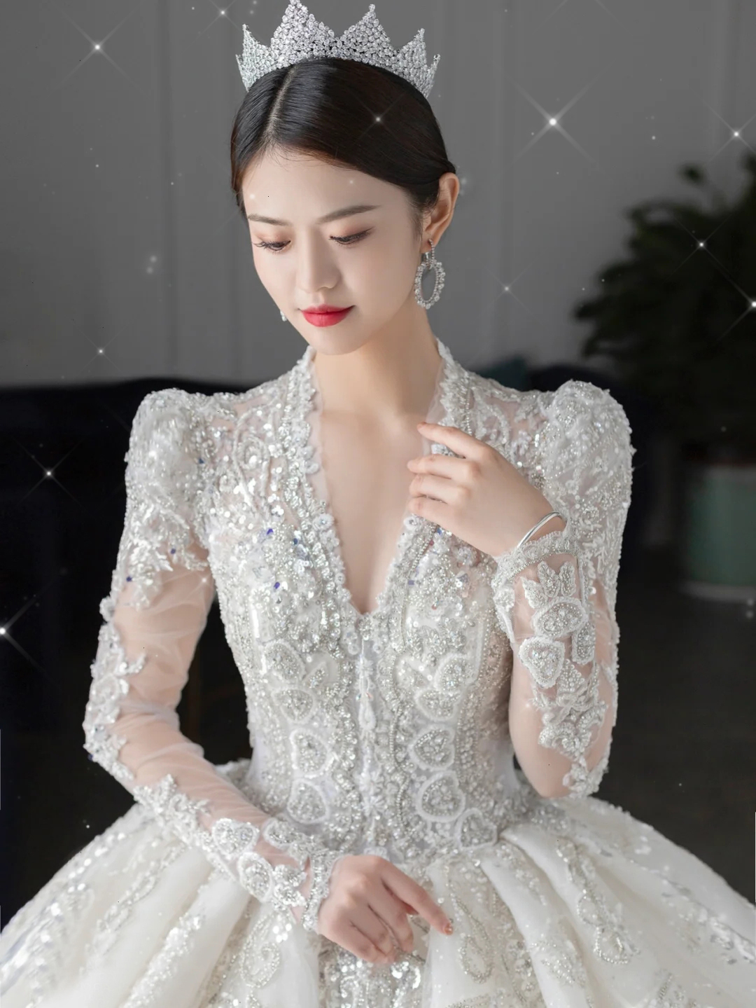 French light wedding dress main yarn 2021 New Vintage Bride long sleeve tail door yarn Palace style high quality