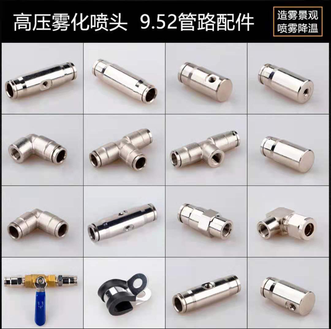 High-pressure atomizing nozzle 9 52mm quick-plug joint textile humidification spray nozzle straight-through single-spray double-nozzle joint