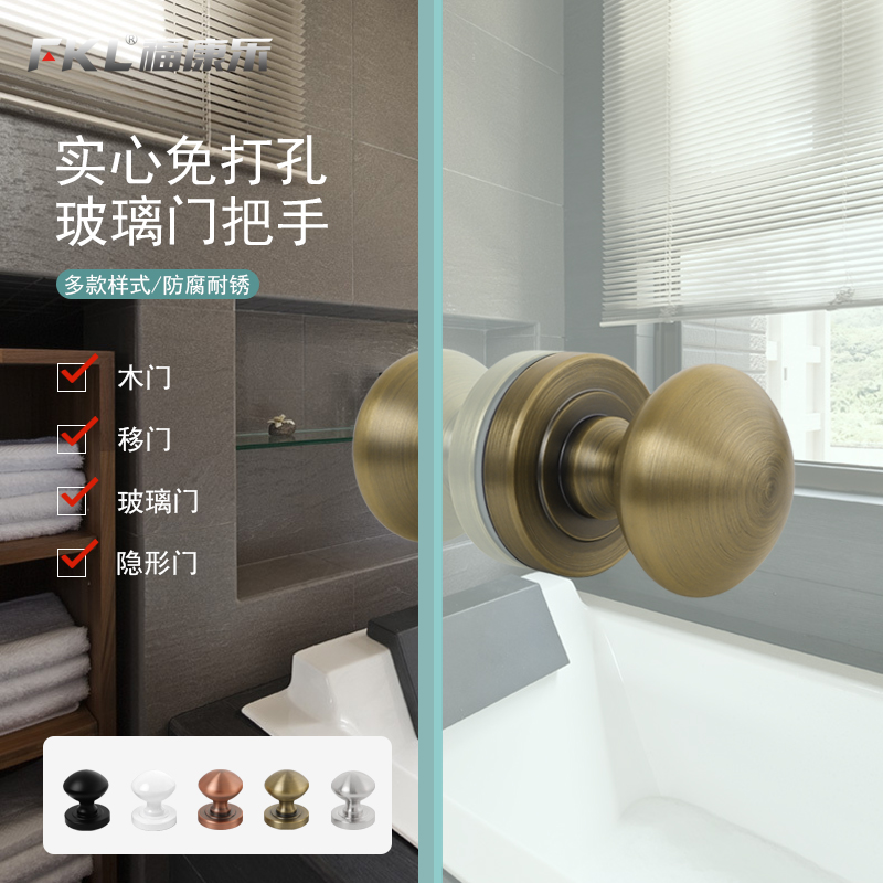 North Barn Barn Door Black Single Hole Handle Invisible Doorknob Free to punch door knob glass door solid round-Taobao