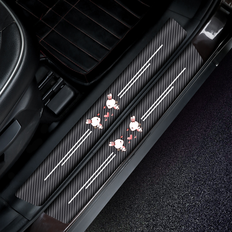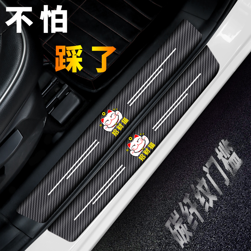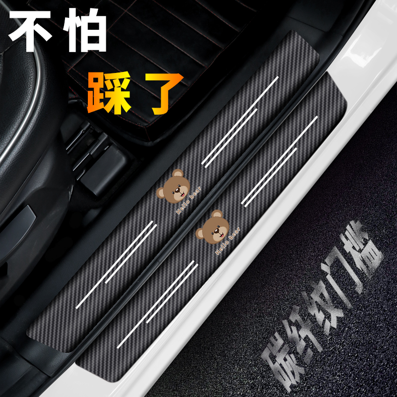 Car cartoon threshold strip anti-stepping stickers creative personality door pedal carbon fiber pattern protective stickers anti-scratch stickers decorations