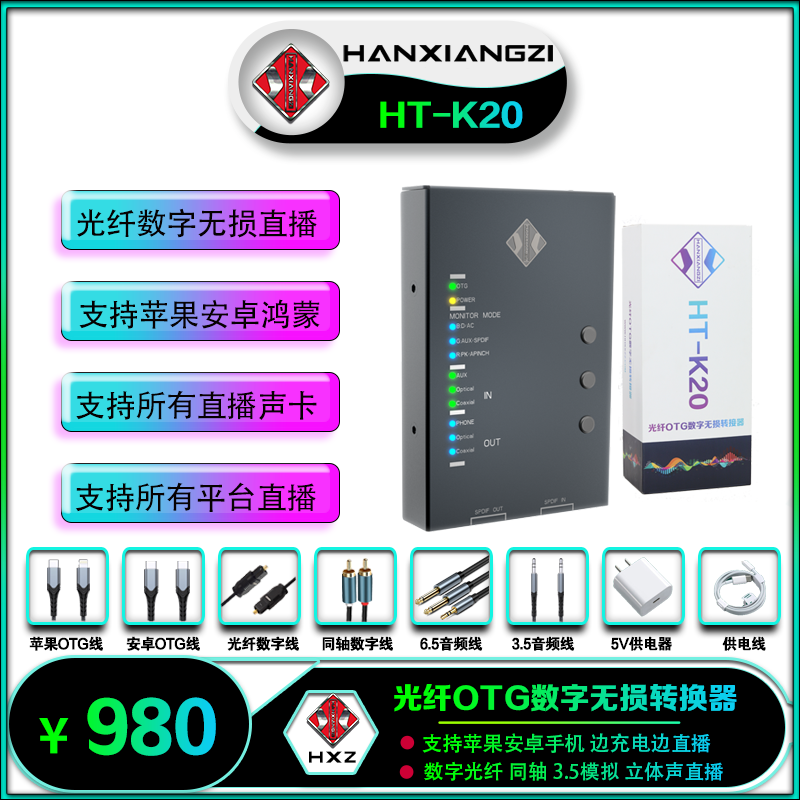 Han Xiangzi HT-K20 Second Generation Optical Fiber Digital OTG Mobile Phone No Distortion Live Converter Network Red Sound Card Companion