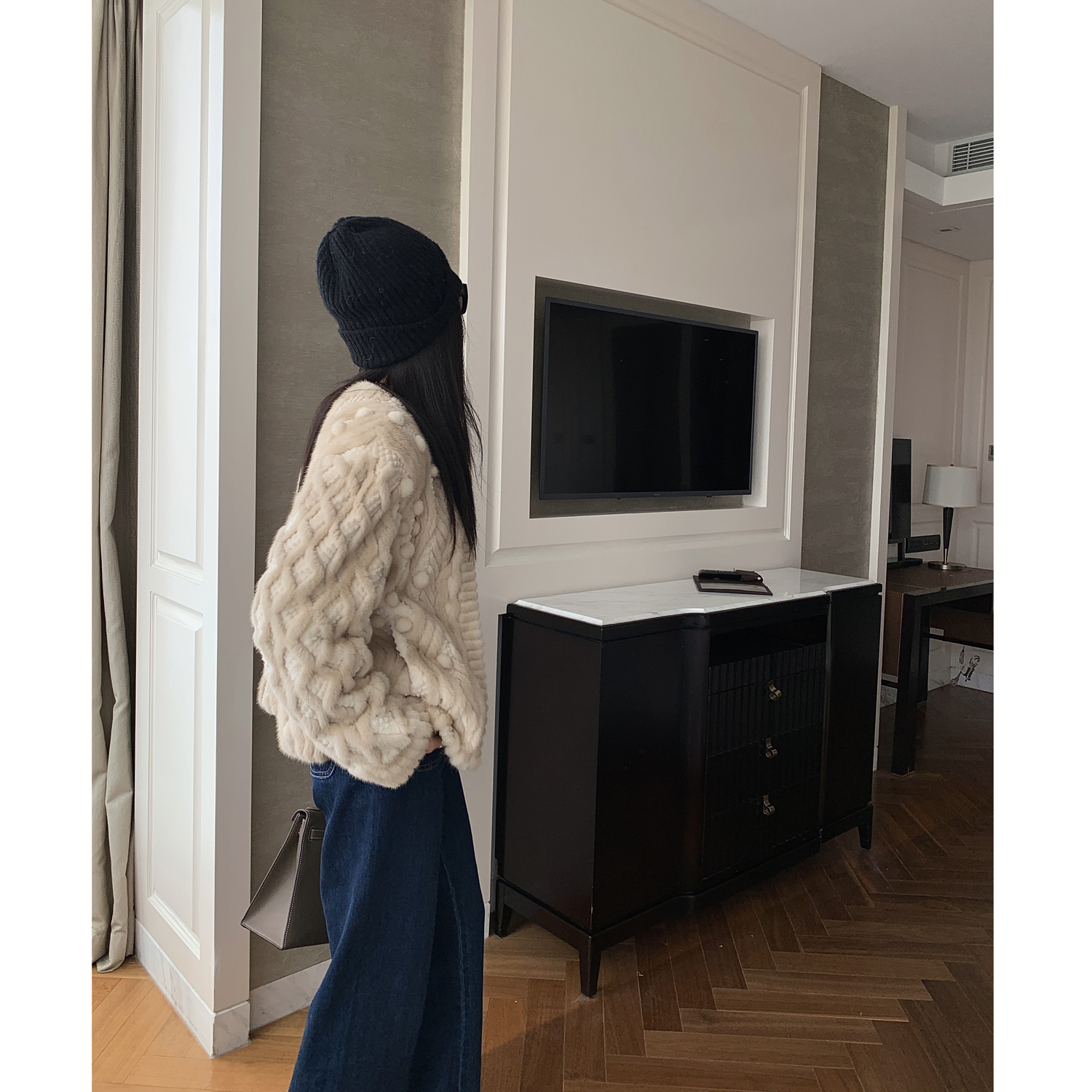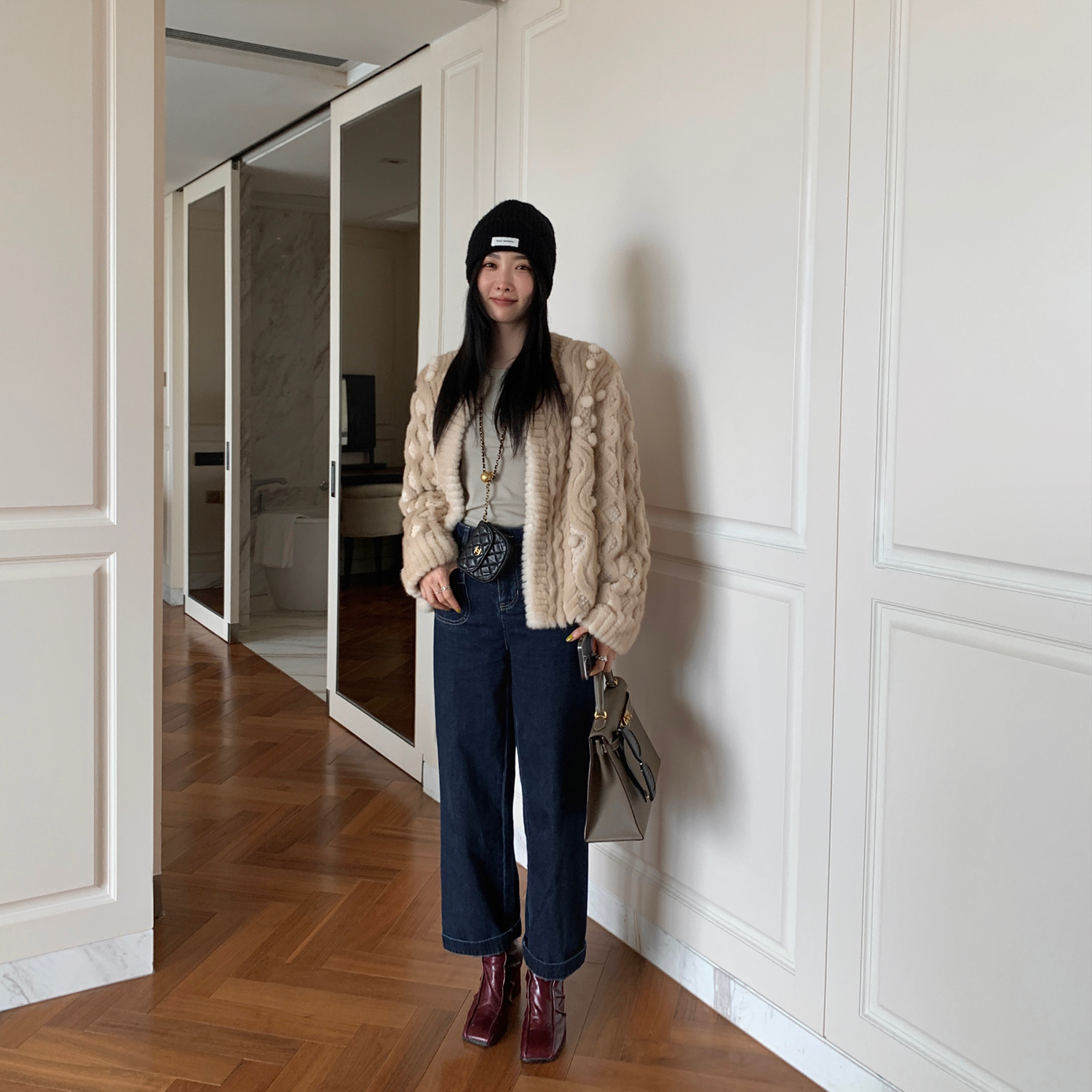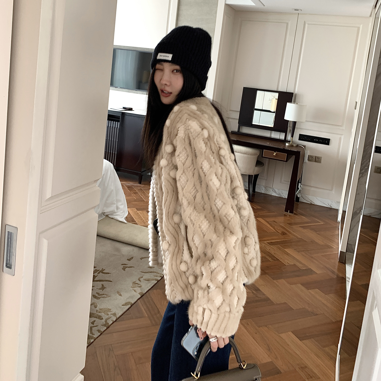 Fu Zhien Fuyun latte imported mink coat women's light luxury lazy young mink fur grass coat winter