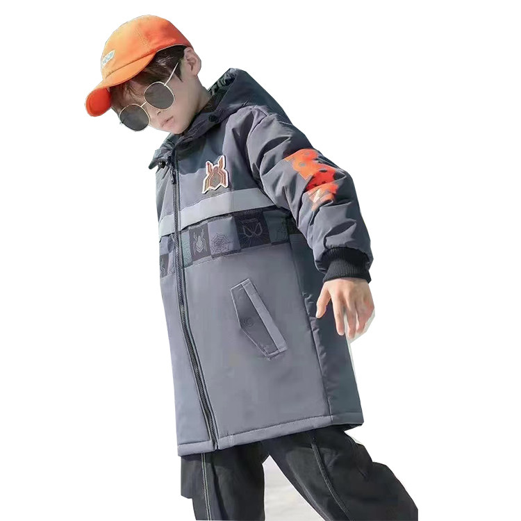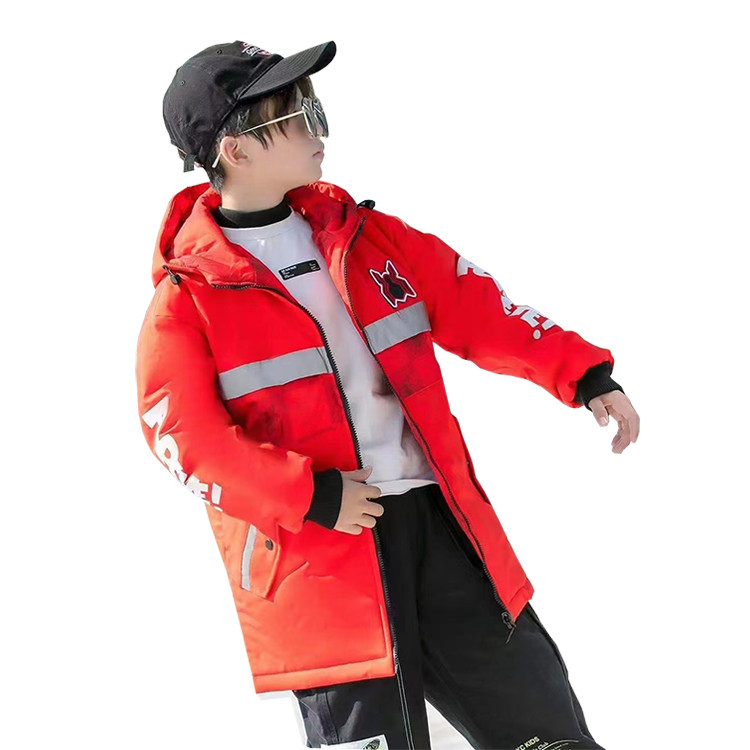 Boys' mid-length cotton coat with reflective strips and hooded children's thickened double-sided cotton jacket winter children's clothing 2021 coat
