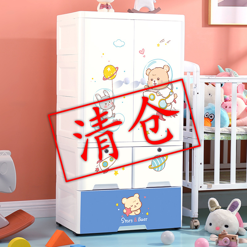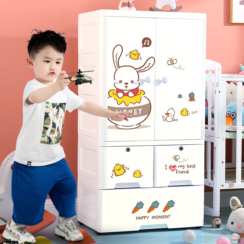 Step up Tong wardrobe Bedroom Home Cartoon minimalist Contained Cabinet Plastic Double Door Hanging closet Baby hanging wardrobe