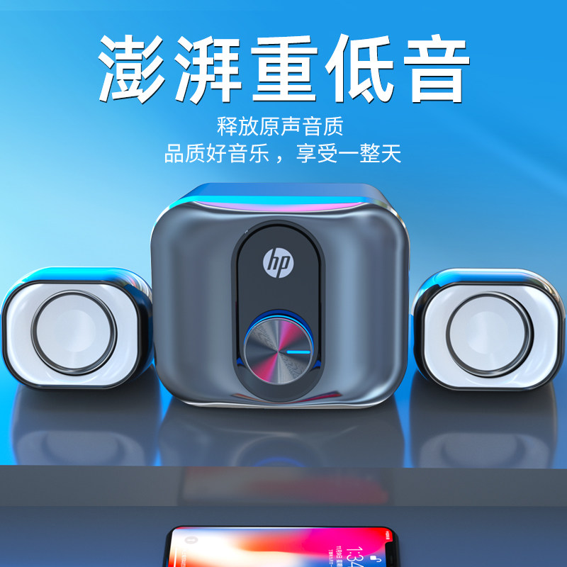 HP HP audio computer audio desktop home notebook universal small speaker cable desktop overweight subwoofer horn active multimedia usb High Quality Impact