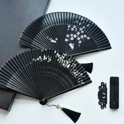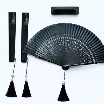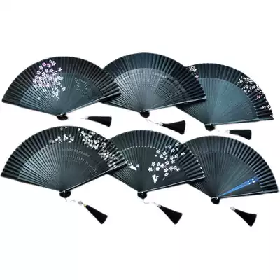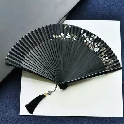 White plum black folding fan Rice Loukong black folding fan Window grille Loukong black folding fan s Loukong cherry blossom black folding fan Black cherry blossom rabbit folding fan s Loukong color cherry blossom black folding fan Black bone clip Red folding fan Plain face plain bone