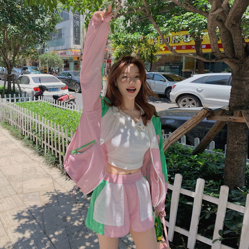 Casual Sports Suit Women's Summer 2022 New Fashion Foreign-Style Sunscreen Shorts Running Two Sets Eben