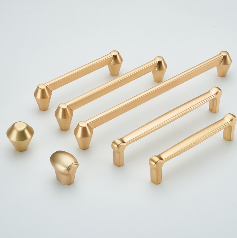 O Cari Zinc Alloy Modern Brief About Golden Copper Face Wire Drawing Whole Cabinet Wardrobe Drawers Cabinet Door Handle Single Hole Handle
