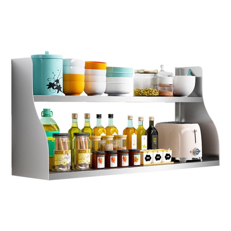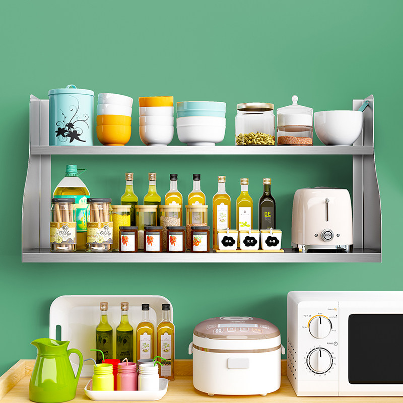 Two layers Stainless Steel Kitchen Shelve 2 Microwave Wall-mounted Layer Racks 2 Bowls of Saucer Seasoning 1 Depository