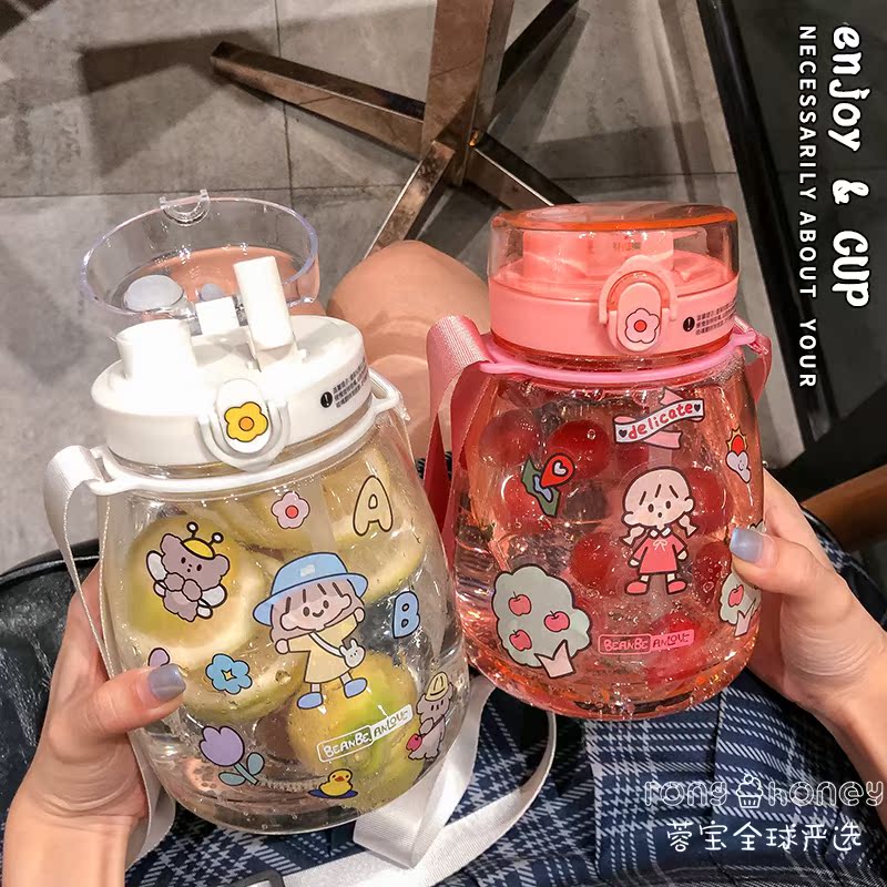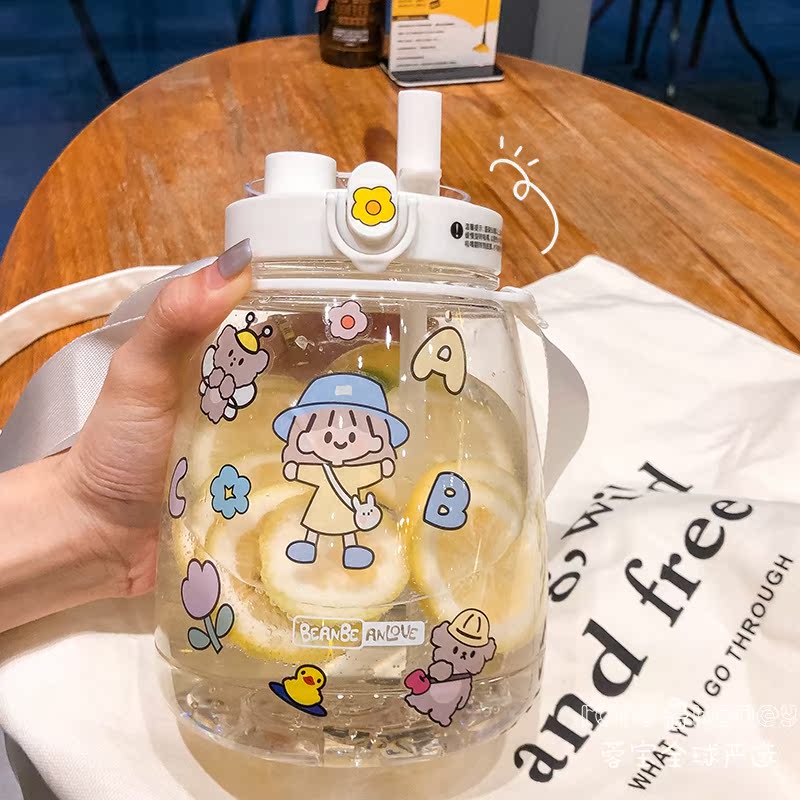 Japanese gp double drinking cup cute net red 1300ml super large capacity water cup female summer with straw portable plastic cup