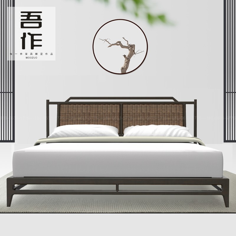 Modern minimalist rattan double bed hotel club apartment 1 8 meters rattan bed model room homestay furniture customization