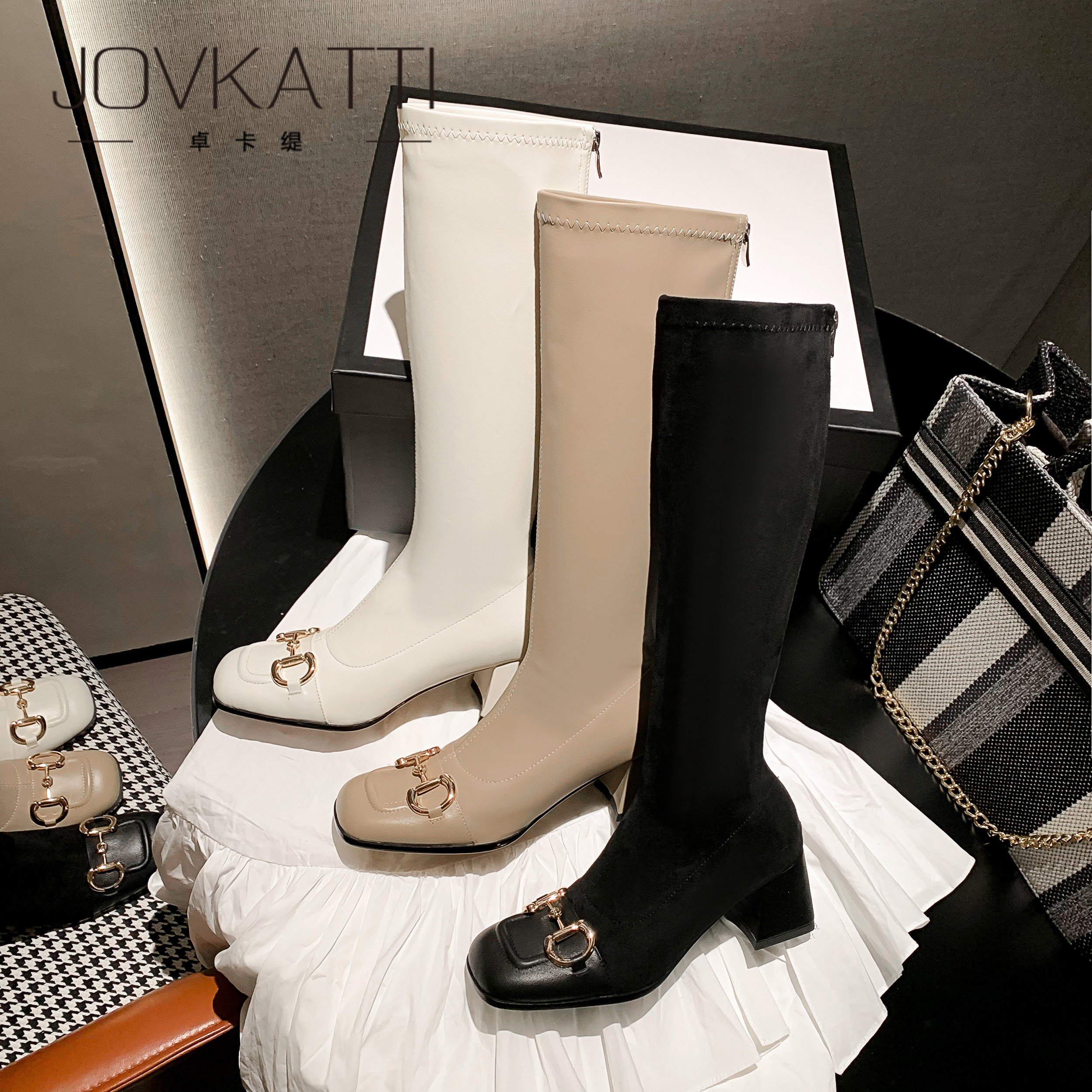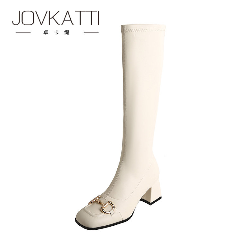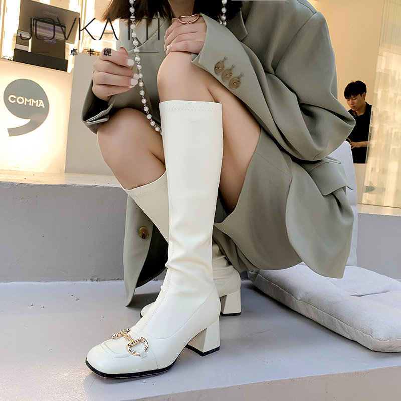 Horsebit boots women's 2022 new thick-heeled high-heeled thin white knight boots square toe tall boots