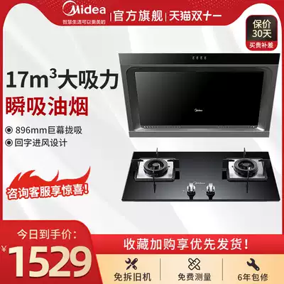 Midea smoke stove set large suction range hood household kitchen gas stove menghuo fire fire J15