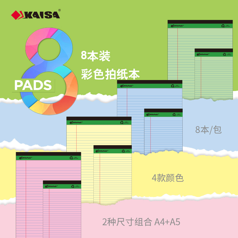 Kaisa KAISA color pat paper American Legal Pad flip notebook horizontal line easy tear line class notes law and politics student record book A4A5 American drama same draft