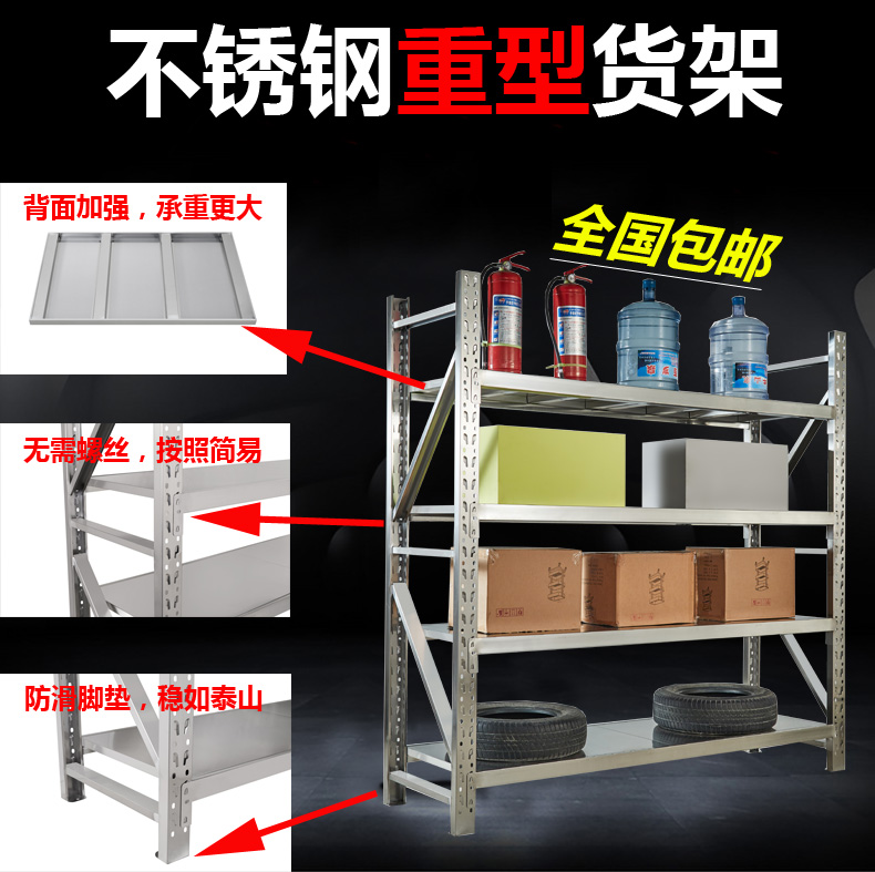 304 stainless steel shelf adjustable commercial multi-layer heavy rack cold warehouse basement rack simple